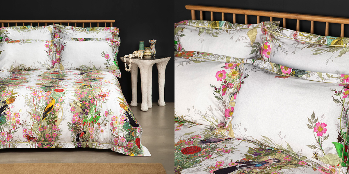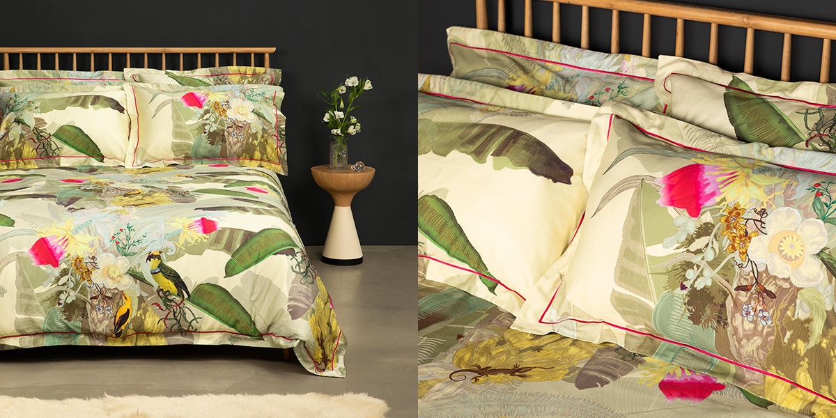 Featuring four elegant and timeless designs, the collection draws its inspiration from the beauty of nature, which sees blooming botanicals and vibrant wildlife flourish on luxurious 220 thread count cotton sateen. Presented in both fresh brights and a rich colour palette of teal, tropical green and moody darks, the collection brings drama and style to the bedroom.